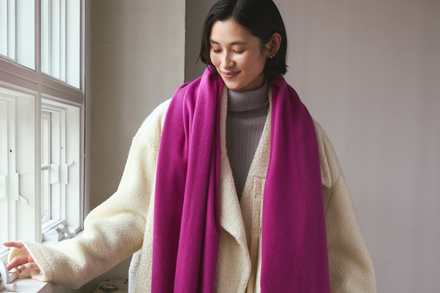 40年以上ストールやマフラーを製造してきたメーカーとして、デザインや商品の品質には一切の妥協を許しません。協力工場で一貫生産を行うことで、高品質の商品を手に取りやすい価格でお客様にお届けいたします。