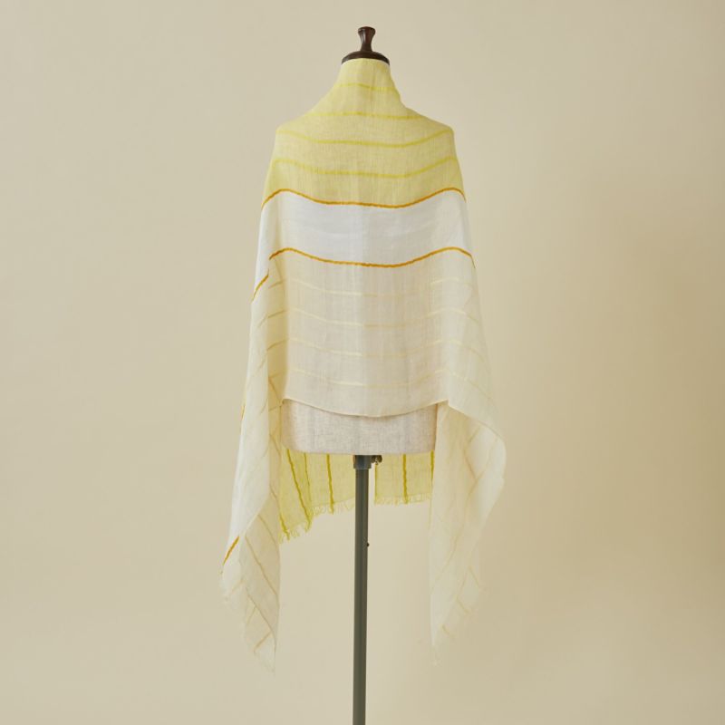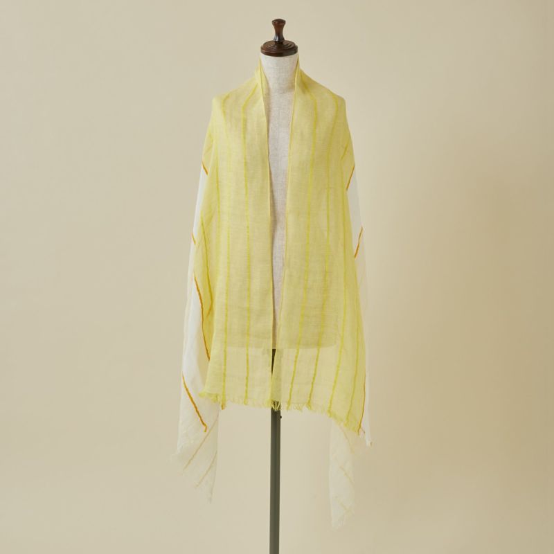 夏らしいブルーとイエローのカラーが夏のコーディネートに華を添えてくれるストール。