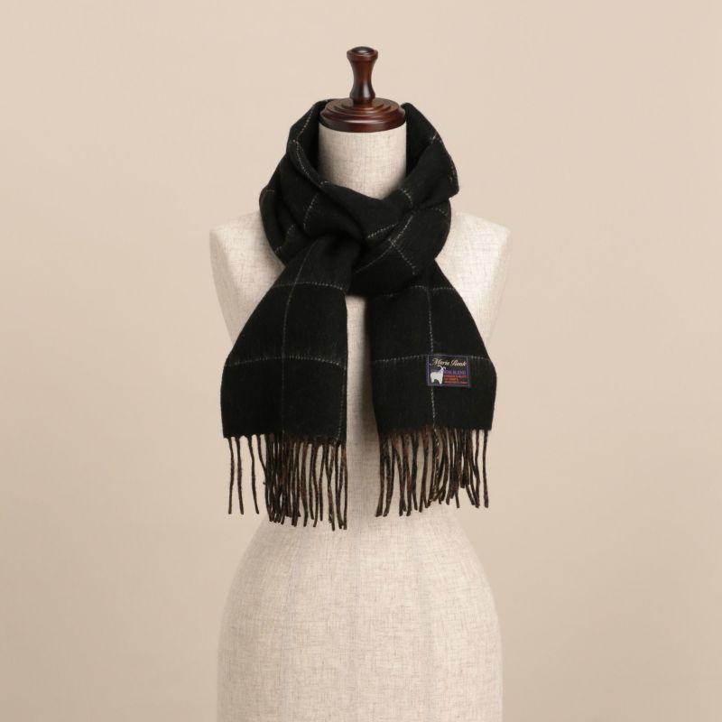 【会員登録】で300ptプレゼント★ カシミヤブレンドチェックリバーシブルマフラー<クロ>