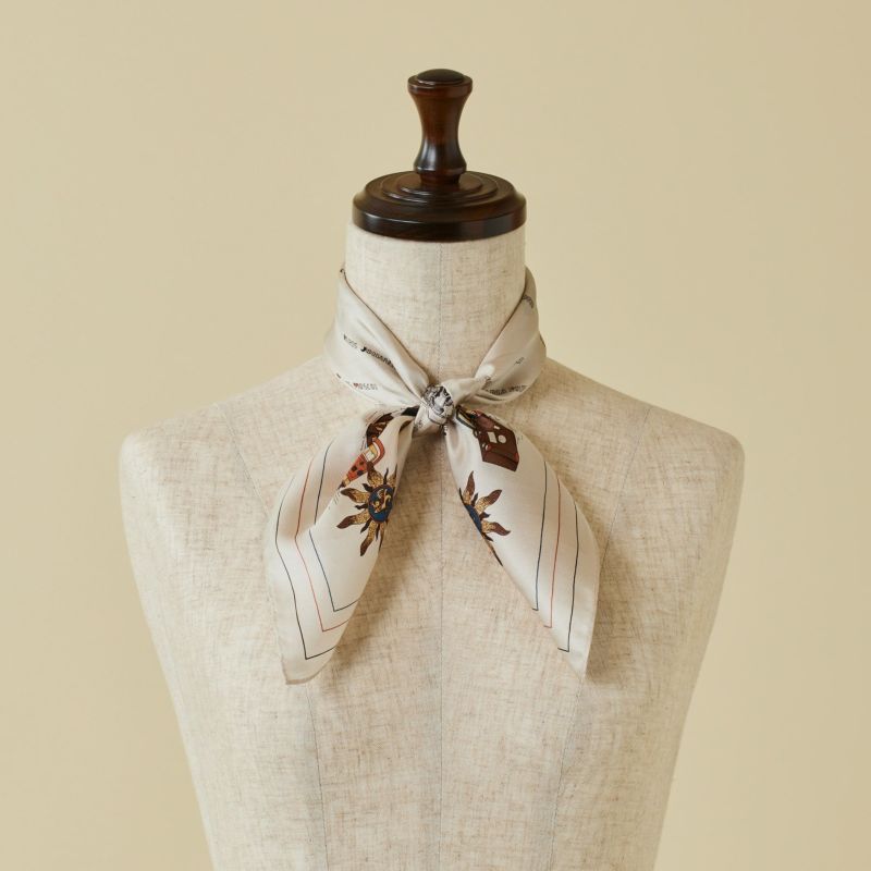 「世界を旅するMaria Rouk(マリアルーク)」をテーマにデザインした特別な一枚。遊び心のあるモチーフで、今すぐにでも旅に出たくなるようなスカーフです。