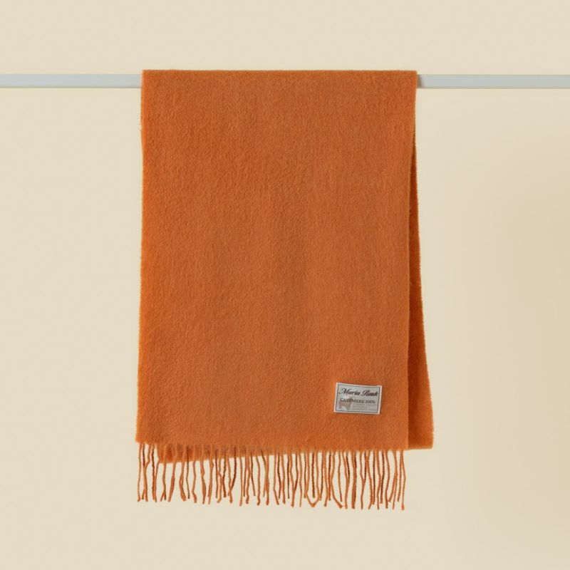 【会員登録】で300ptプレゼント★ カシミヤ100%無地マフラー<オレンジ>