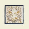 サイズは53×53cmのプチサイズ。コンパクトに巻いて頂けて、どんなスタイリングにも合わせやすいサイズ感です。首に巻いて頂くことは勿論、ヘアや手首に巻いてコーディネートのポイントとしてもお使い頂けます。お手持ちのバッグに巻く事で、華やかなバッグへイメージチェンジしてお楽しみ頂けます。