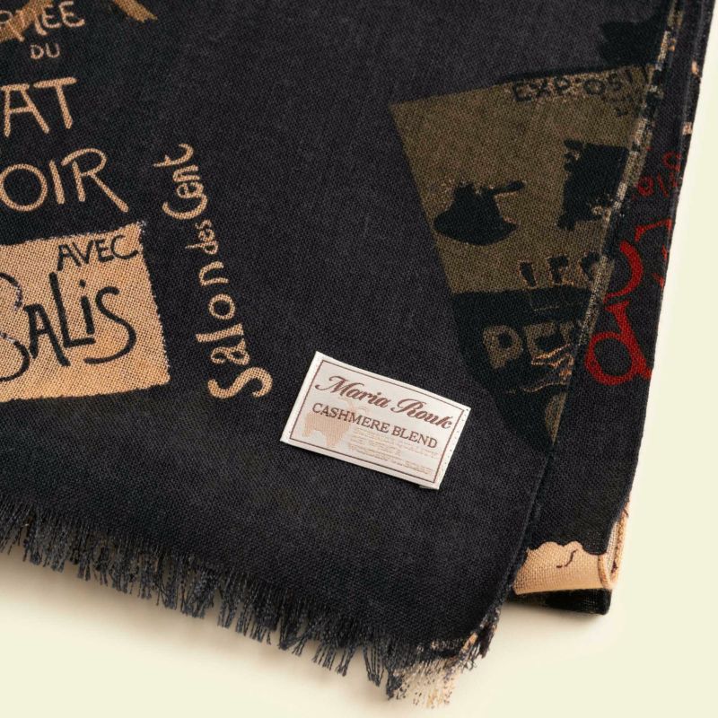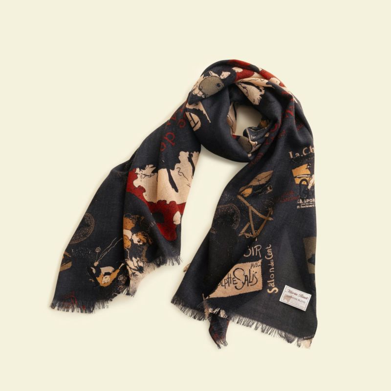 フランスの有名な画家ロートレックの絵をアレンジして作られた日本製のストール。Maria Roukのシルクスカーフ作成に使用される捺染技術を応用し、同じ技法でプリントしております。内モンゴル自治区で採れるウールとカシミヤをブレンドした天然繊維生地を使用しておりますので、暖かさを保ちながらも通気性を備えており、快適にご着用いただけます。折りたたむとコンパクトになりますので、旅行や日常の持ち運びにも便利です。季節を問わず使える素材感により、オフィスや映画館の冷房対策にも役立ちます。落ち着いた配色のストールは、コーディネートにも馴染みやすく、お洒落のアクセントとしてもご活用いただけます。また、ご自宅で手洗いが可能なので、お手入れも簡単です。