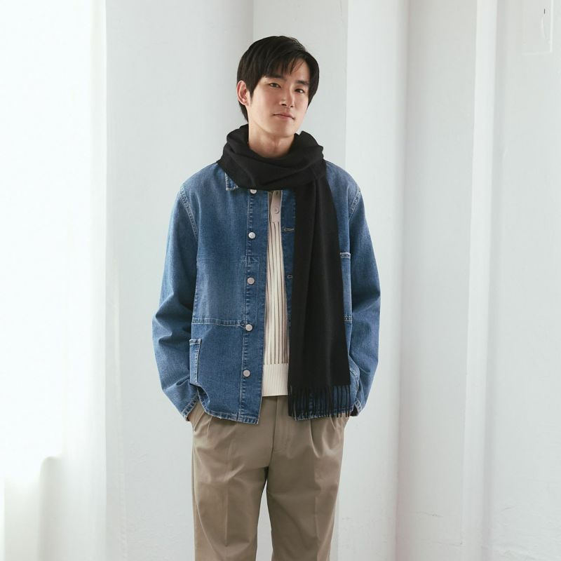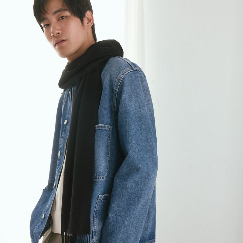 【会員登録】で300ptプレゼント★ カシミヤ100%無地マフラー<ブラック>