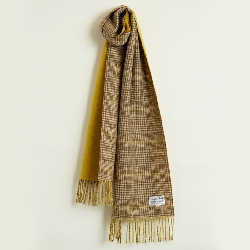 【会員登録】で300ptプレゼント★ カシミヤブレンドチェックリバーシブルマフラー<イエロー×グレンチェック>