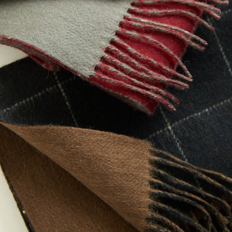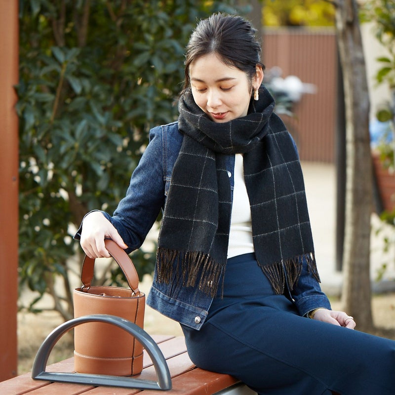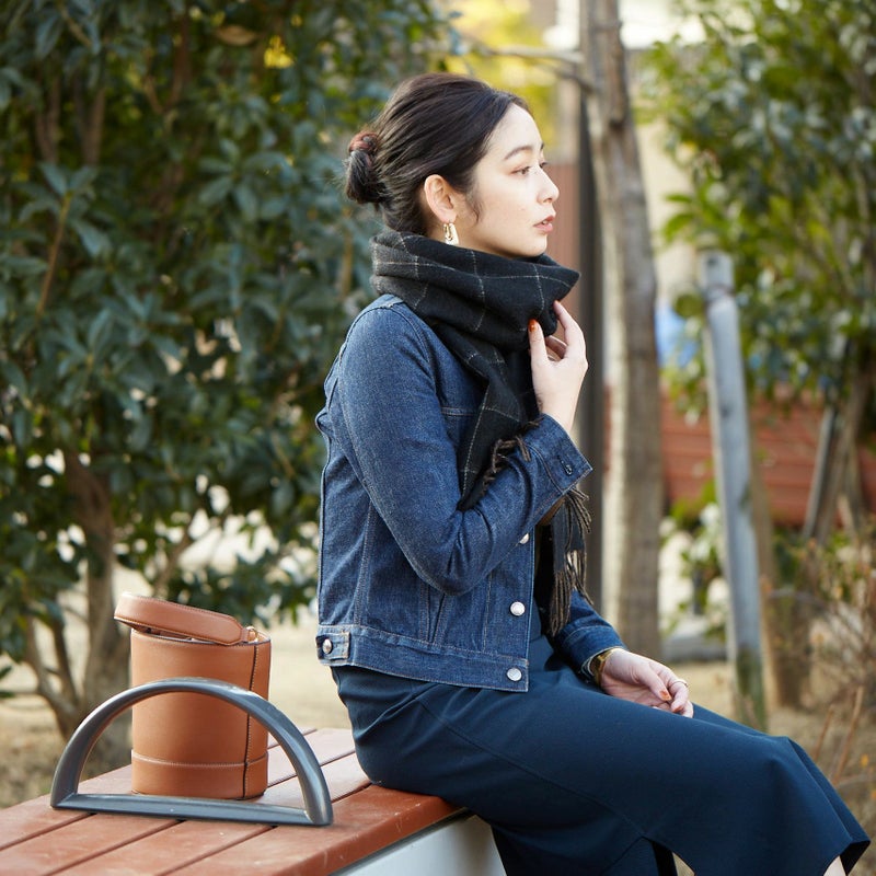 柄×無地のリバーシブル仕様になっており、様々なコーディネートをお楽しみいただけます。コートの中で首から垂らしてお使い頂く”ライナー使い”もおすすめです。