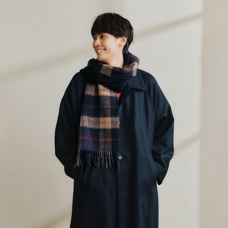 柄×無地のリバーシブル仕様になっており、様々なコーディネートをお楽しみいただけます。コートの中で首から垂らしてお使い頂く”ライナー使い”もおすすめです。