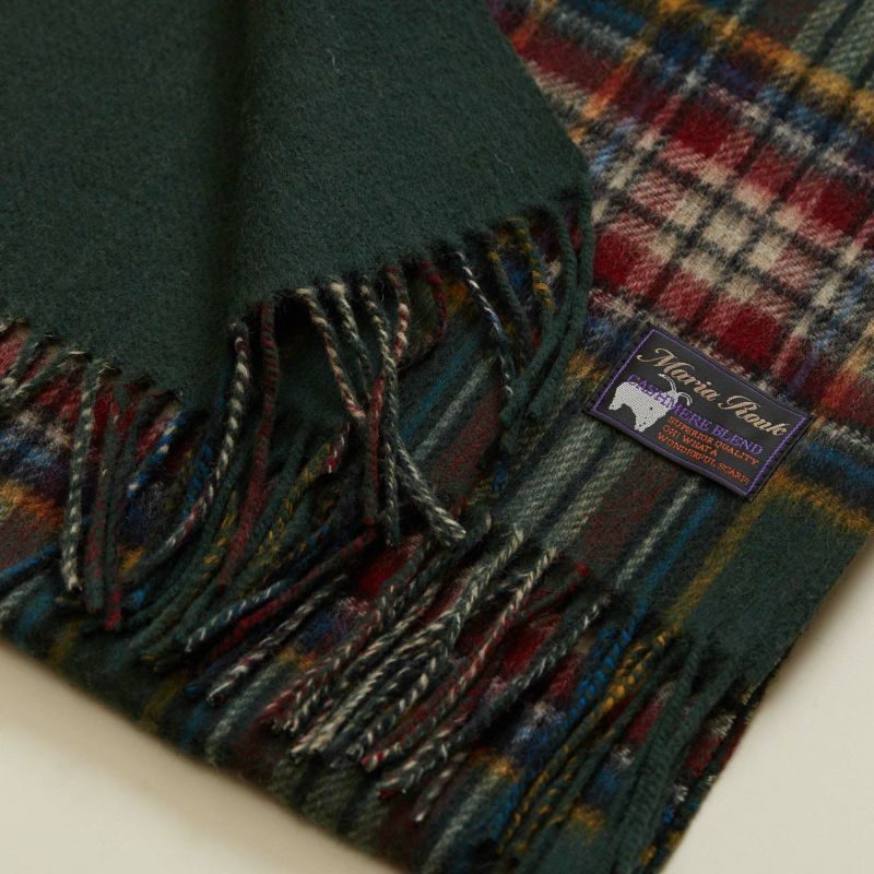 【会員登録】で300ptプレゼント★ カシミヤブレンドチェックリバーシブルマフラー<グリーン>