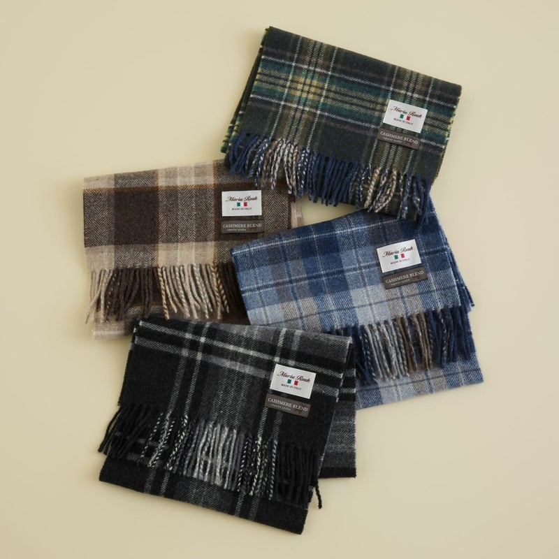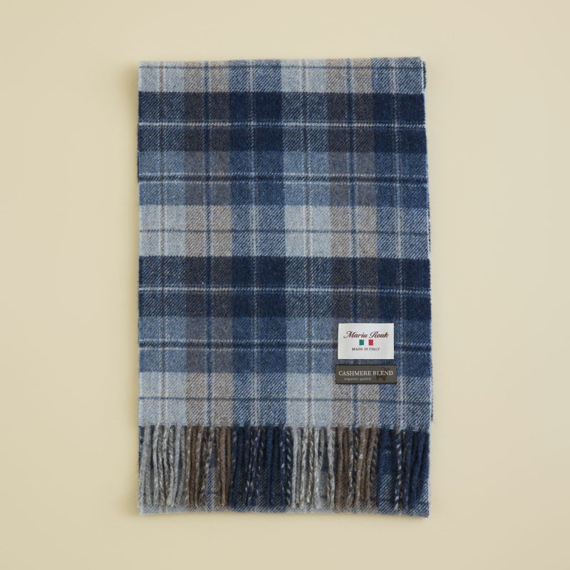 【会員登録】で300ptプレゼント★ イタリア製カシミヤブレンドチェックマフラー<ブルー>