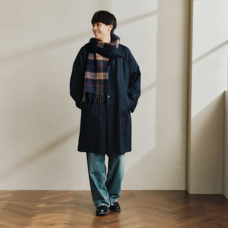 柄×無地のリバーシブル仕様になっており、様々なコーディネートをお楽しみいただけます。コートの中で首から垂らしてお使い頂く”ライナー使い”もおすすめです。
