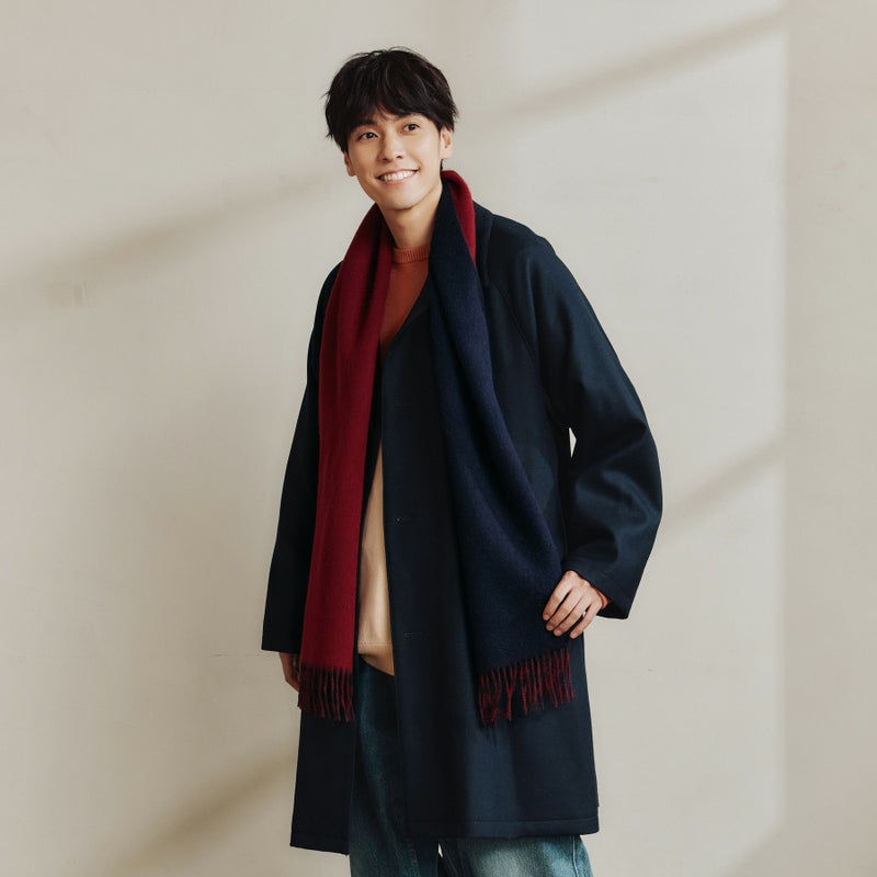 無地×無地のリバーシブル仕様になっており、様々なコーディネートをお楽しみいただけます。コートの中で首から垂らしてお使い頂く”ライナー使い”もおすすめです。