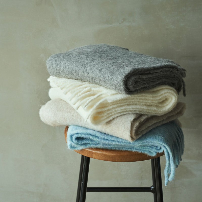 ブークレストールとは、独特なテクスチャーとスタイルを持つストールです。「ブークレ」とは、フランス語で「ループ」や「カール」を意味し、この技法で作られた生地はループ状の糸を織り込むことで、立体的でふわふわした表情のストールが完成します。