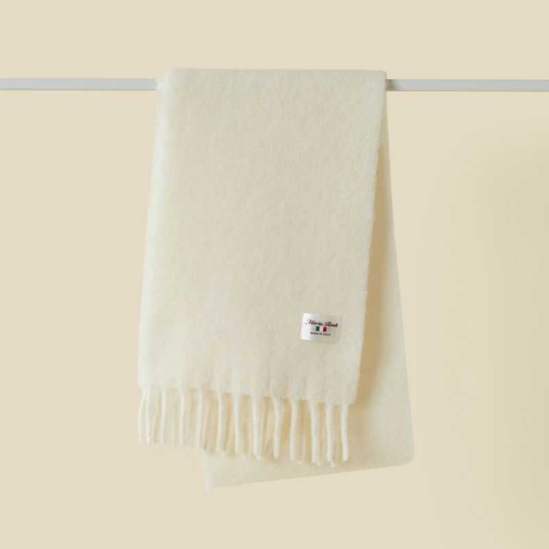 Maria Roukの協力工場でイタリア製の上質な糸を使い、じっくり丁寧に織り上げたブークレマフラーです。アルパカ繊維とウールの高い保湿性、耐久性に優れたナイロンをブレンドした糸を使用しておりますので、マフラーは軽量でありながら柔軟性と保温性に優れています。