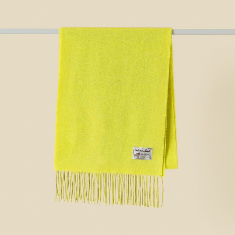 【会員登録】で300ptプレゼント★ カシミヤ100%無地マフラー<イエロー>