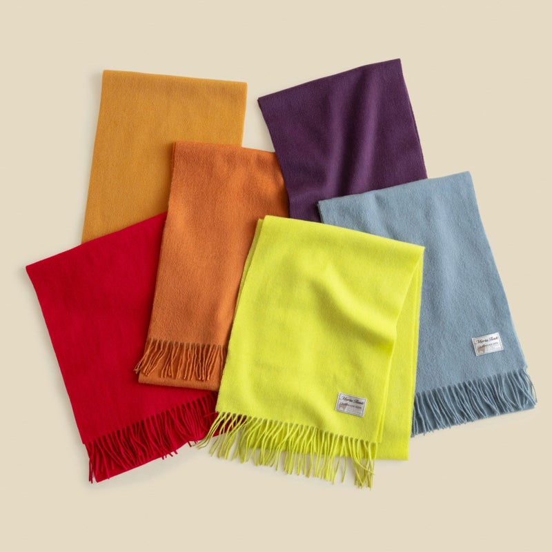 世界最高の品質と言われる内モンゴル産のカシミヤ原料を使用したベーシックカラーマフラーです。触れた瞬間にわかる確かなクオリティと極上の柔らかさが特徴。アザミ起毛により、表面はウェーブ状に仕上がり、美しい光沢を放っています。どんなコーディネートにも馴染みが良く、流行にも左右されにくいため、ワードローブに必ず一枚は持っておきたい定番アイテムです。カラーバリエーションも豊富で、ビジネス用・ギフト用としてもご好評頂いているMaria Roukのロングセラーアイテムです。