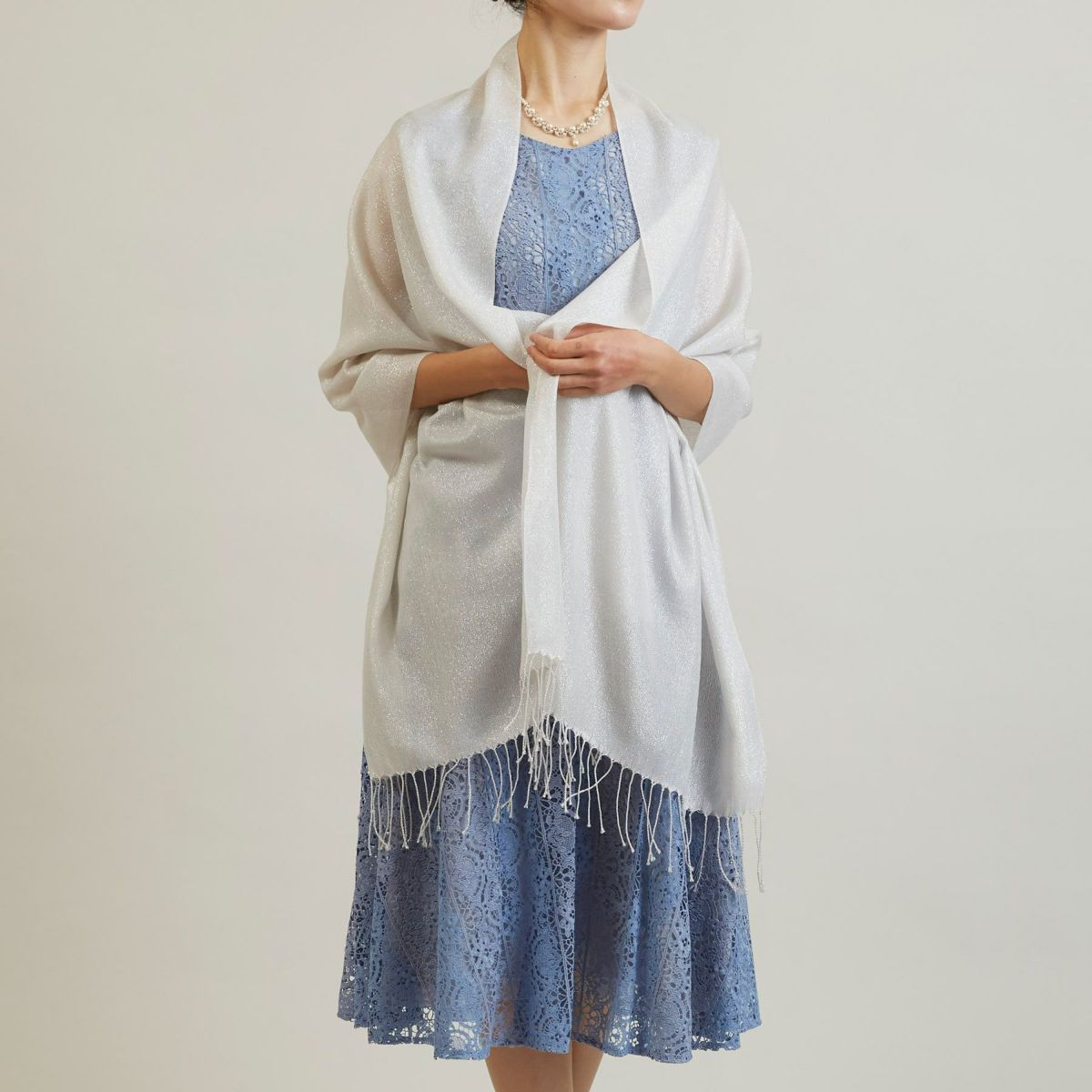 ビーズ付き2WAYシフォンストール<シャンパンゴールド>