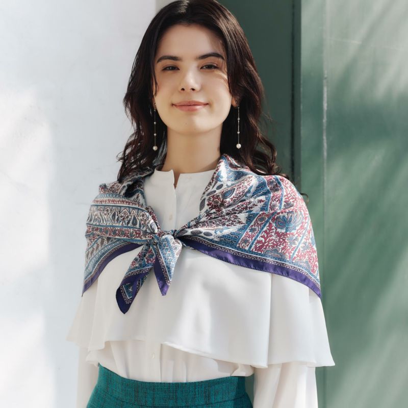 とっても素敵なスカーフが届きました。 スカーフは以前から使ってみたかったのですが、スカーフに多い大柄の大人っぽいモチーフが顔に似合わず、購入したことがありませんでした。 こちらのスカーフは柄が小さく目立ちすぎなくて、薄い顔の私にも似合いました。 これからたくさん使おうと思います。