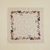サイズは53×53cmのプチサイズ。コンパクトに巻いて頂けて、どんなスタイリングにも合わせやすいサイズ感です。首に巻いて頂くことは勿論、ヘアや手首に巻いてコーディネートのポイントとしてもお使い頂けます。お手持ちのバッグに巻く事で、華やかなバッグへイメージチェンジしてお楽しみ頂けます。