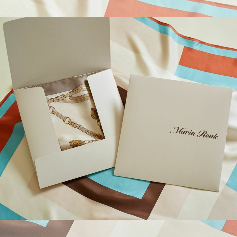 大判サイズのスカーフは、アレンジの幅が広く、首元で巻く事はもちろん、ヘアーアレンジやバックやベルトに巻き付けるなど、様々なコーディネートをお楽しみ頂けます。シルクならではの美しい光沢感が、コーディネートに華やかさをプラスしてくれます。熟練の職人により、日本の『手捺染(てなっせん)』と呼ばれる伝統技法を用いてお作りしています。一般的なプリント加工とは異なり、一色ごとに型を作り染める事で柄をクリアに表現できるのが特徴です。生地は滑らかな肌触りが特徴の上質なシルクツイルを使用しております。