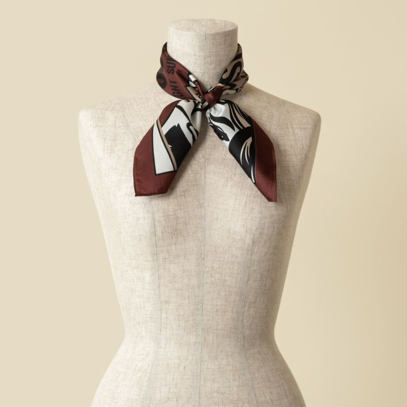 サイズは53×53cmのプチサイズ。コンパクトに巻いて頂けて、どんなスタイリングにも合わせやすいサイズです。首に巻く以外にも、手首に巻いたり、鞄に付けたりと様々なシーンで大活躍してくれます。