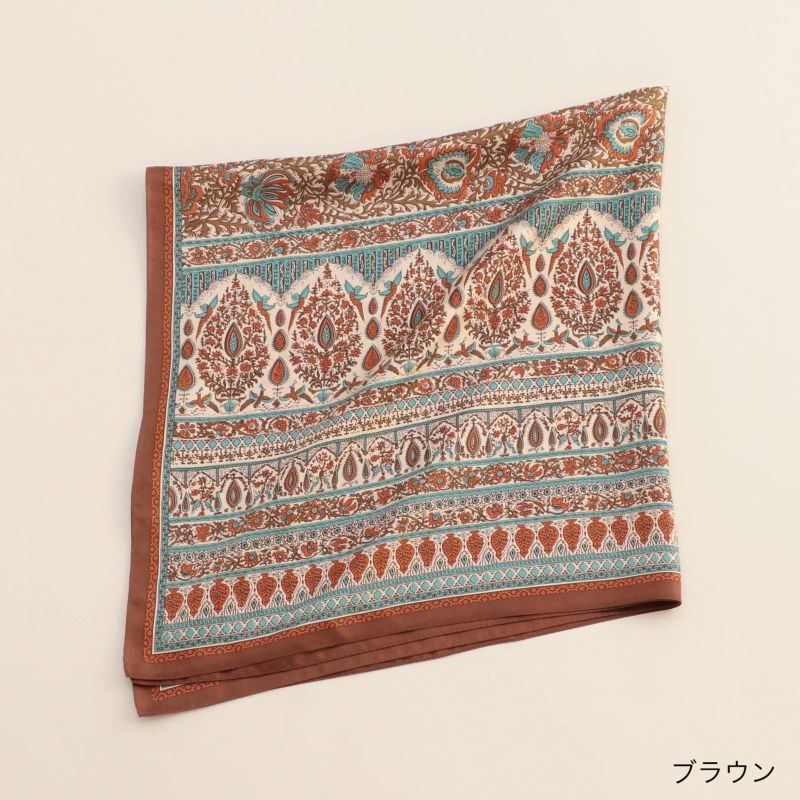 【会員登録】で300ptプレゼント★ レトロ柄スカーフ<ブラウン> シルク100% 日本製