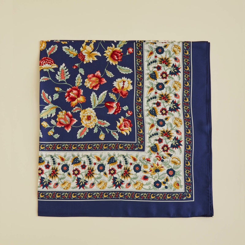 大小様々な花が散りばめられた絵画の様なスカーフが新登場しました。どこか懐かしい"レトロな雰囲気"を感じさせるデザインが特徴です。