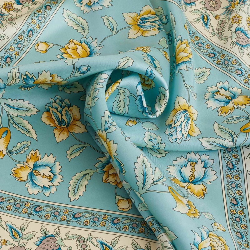 【会員登録】で300ptプレゼント★ オリエンタルフラワースカーフ<ブルー> シルク100% 日本製