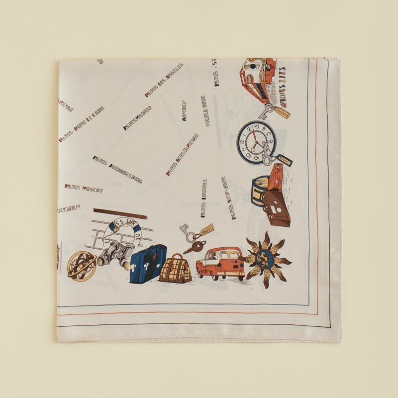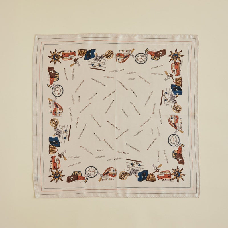 「世界を旅するMaria Rouk(マリアルーク)」をテーマにデザインした特別な一枚。遊び心のあるモチーフで、今すぐにでも旅に出たくなるようなスカーフです。