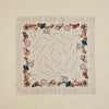 サイズは53×53cmのプチサイズ。コンパクトに巻いて頂けて、どんなスタイリングにも合わせやすいサイズ感です。首に巻いて頂くことは勿論、ヘアや手首に巻いてコーディネートのポイントとしてもお使い頂けます。お手持ちのバッグに巻く事で、華やかなバッグへイメージチェンジしてお楽しみ頂けます。