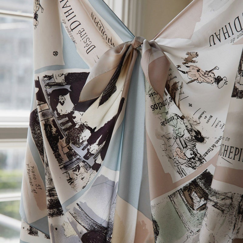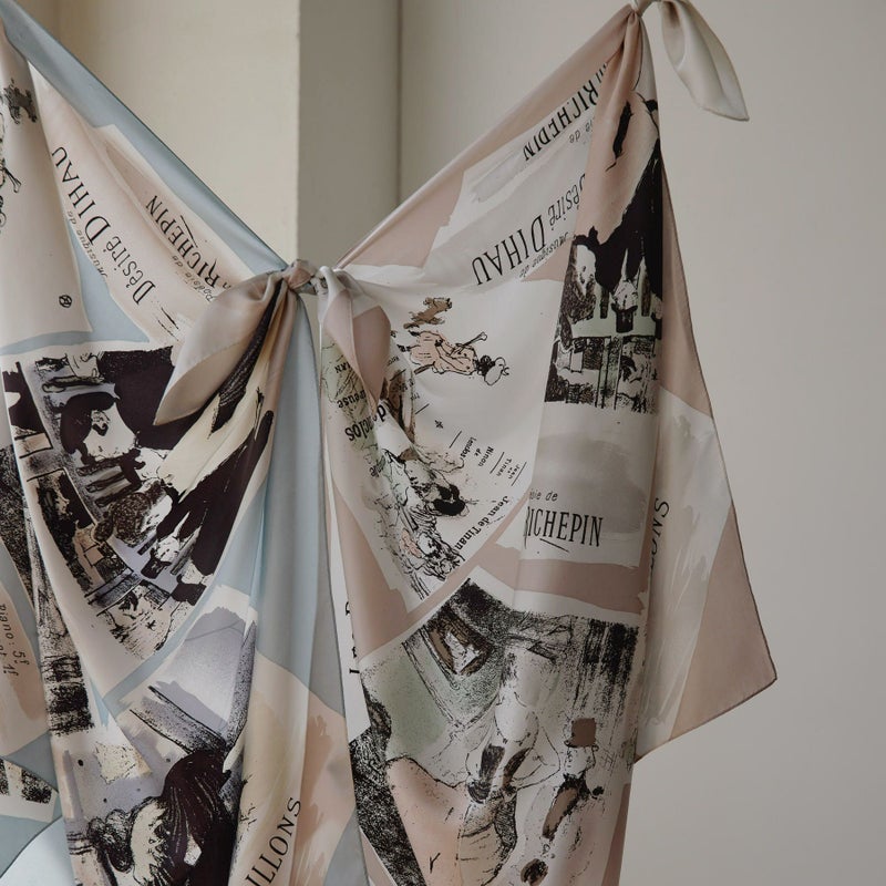 ロートレックの柄をモチーフにして1枚の作品に仕上げました。伝統ある日本の工場で、職人が丁寧に手捺染で染め上げております。生地は上質なシルクツイルを使用。シルク100%特有の美しい光沢感、滑らかな極上の肌触りでコーディネートを華やかにしてくれます。