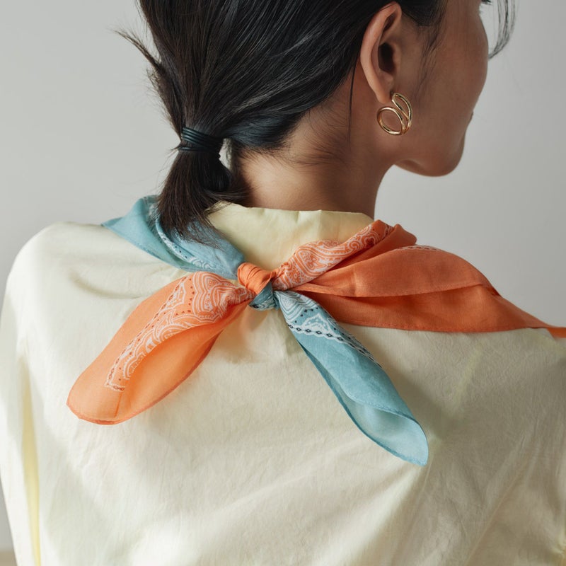暑い夏もさらっとした肌触りで快適にお過ごし頂けるスカーフが新登場しました。 大人の女性が楽しめるドット×ペイズリーのシックなデザインです。 シルク綿でお作りした生地は、吸湿性、通気性に優れており汗ばむ季節も快適にスカーフをお楽しみ頂けます。 ご自宅で手洗いが可能ですので暑い季節も清潔に美しくご使用いただけます。また、天然繊維はお肌にやさしく、敏感肌の方にもご愛用頂いております。