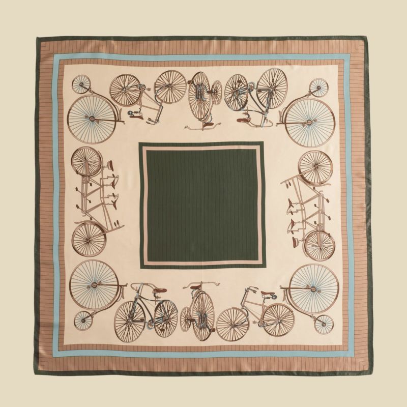【会員登録】で300ptプレゼント★ 自転車柄スカーフ<カーキ> シルク100% 日本製
