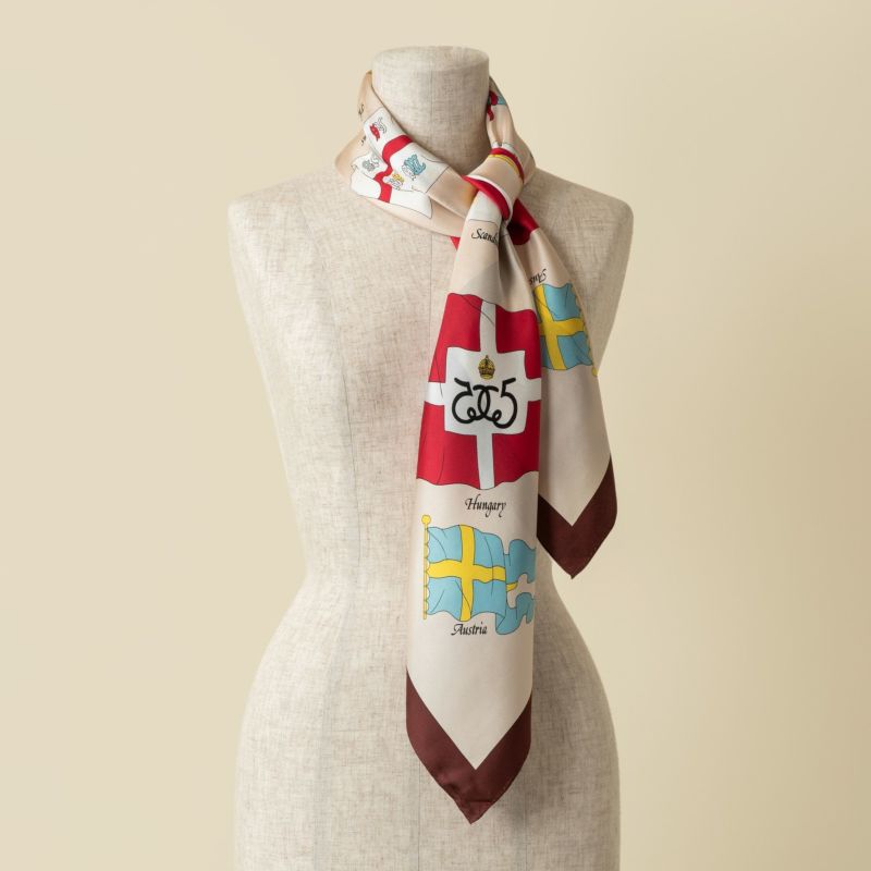鮮やかな色彩と洗練されたデザインが織りなす、まさに世界中の美を纏ったシルクスカーフが登場しました。各国の誇りを象徴する国旗モチーフが、あなたのスタイルに独自のアクセントを加えます。伝統ある日本の工場で、職人が丁寧に手捺染で染め上げております。