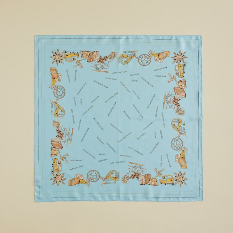 「世界を旅するMaria Rouk(マリアルーク)」をテーマにデザインした特別な一枚。遊び心のあるモチーフで、今すぐにでも旅に出たくなるようなスカーフです。