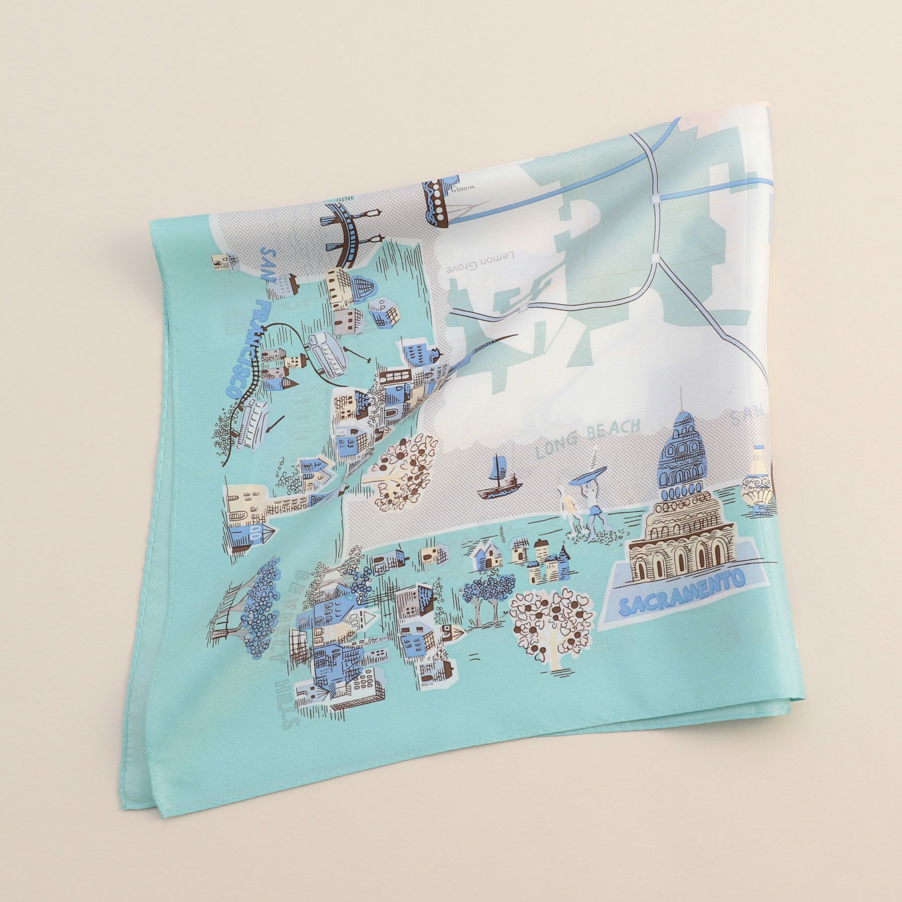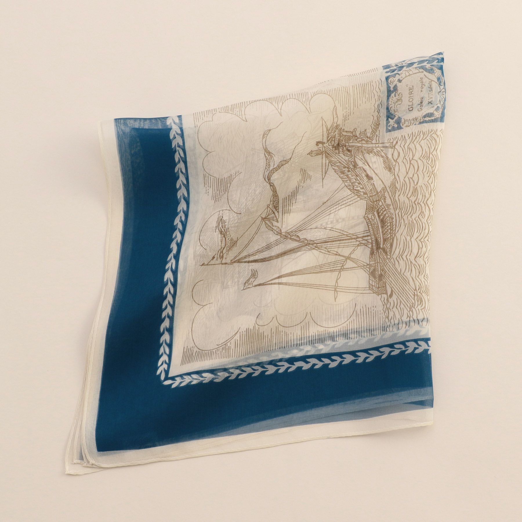 マップ柄スカーフ<ブルー> シルク100% 日本製