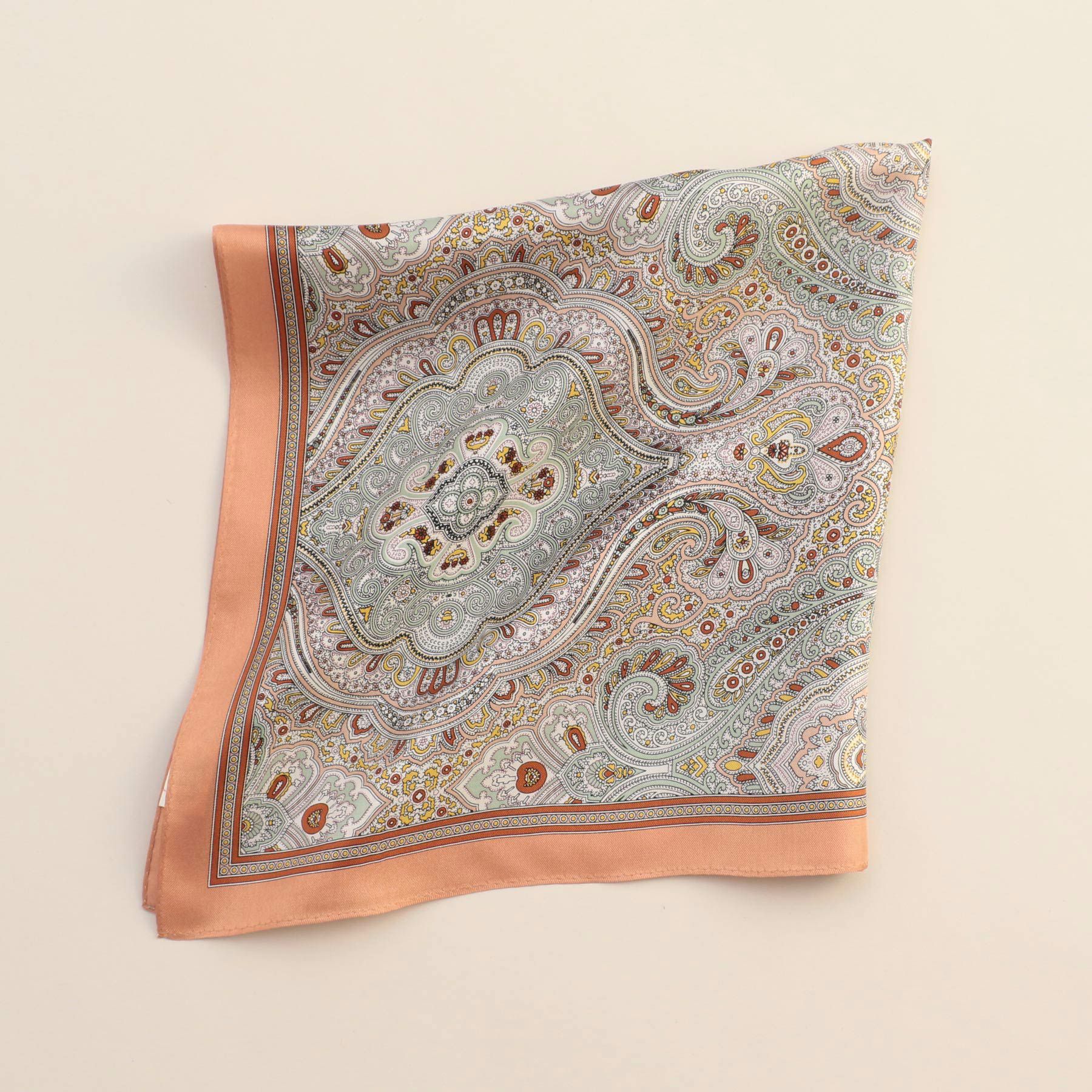 ペイズリースカーフ<オレンジ> シルク100% 日本製