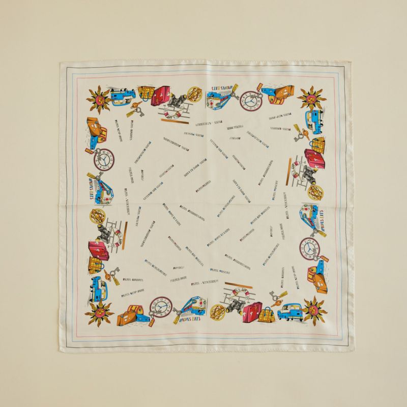 「世界を旅するMaria Rouk(マリアルーク)」をテーマにデザインした特別な一枚。遊び心のあるモチーフで、今すぐにでも旅に出たくなるようなスカーフです。