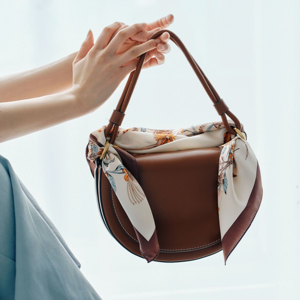 ボタニカルスカーフ<ブラウン> シルク100% 日本製