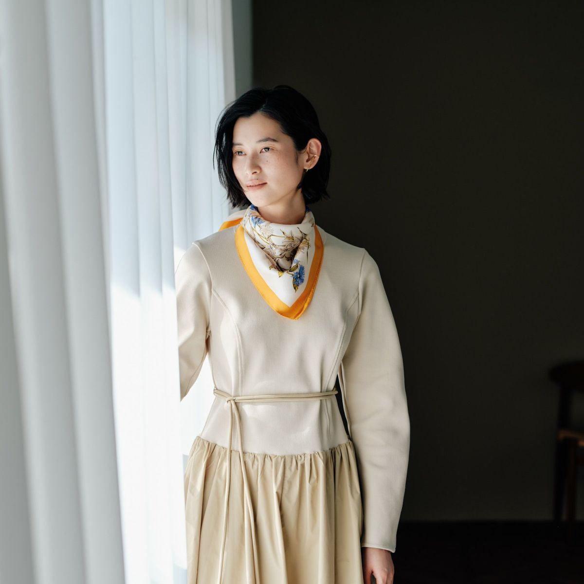 ピンドットスカーフ<オフホワイト> シルク100% 日本製