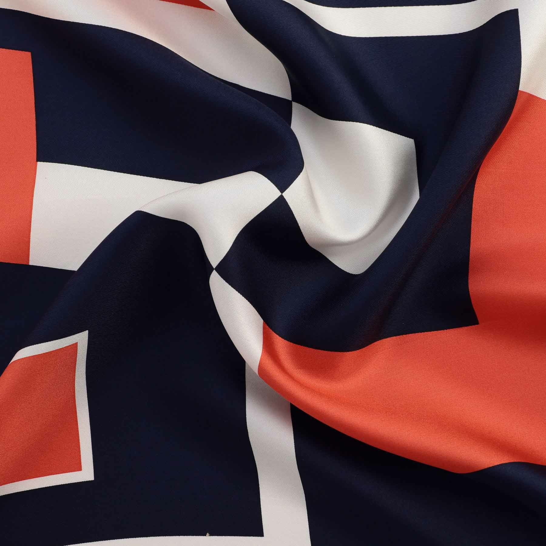 幾何柄4ブロックスカーフ<オレンジ> シルク100% 日本製