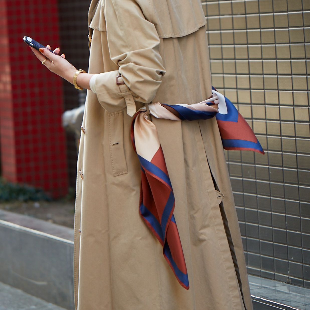 幾何柄バイアススカーフ<キャメル> シルク100% 日本製