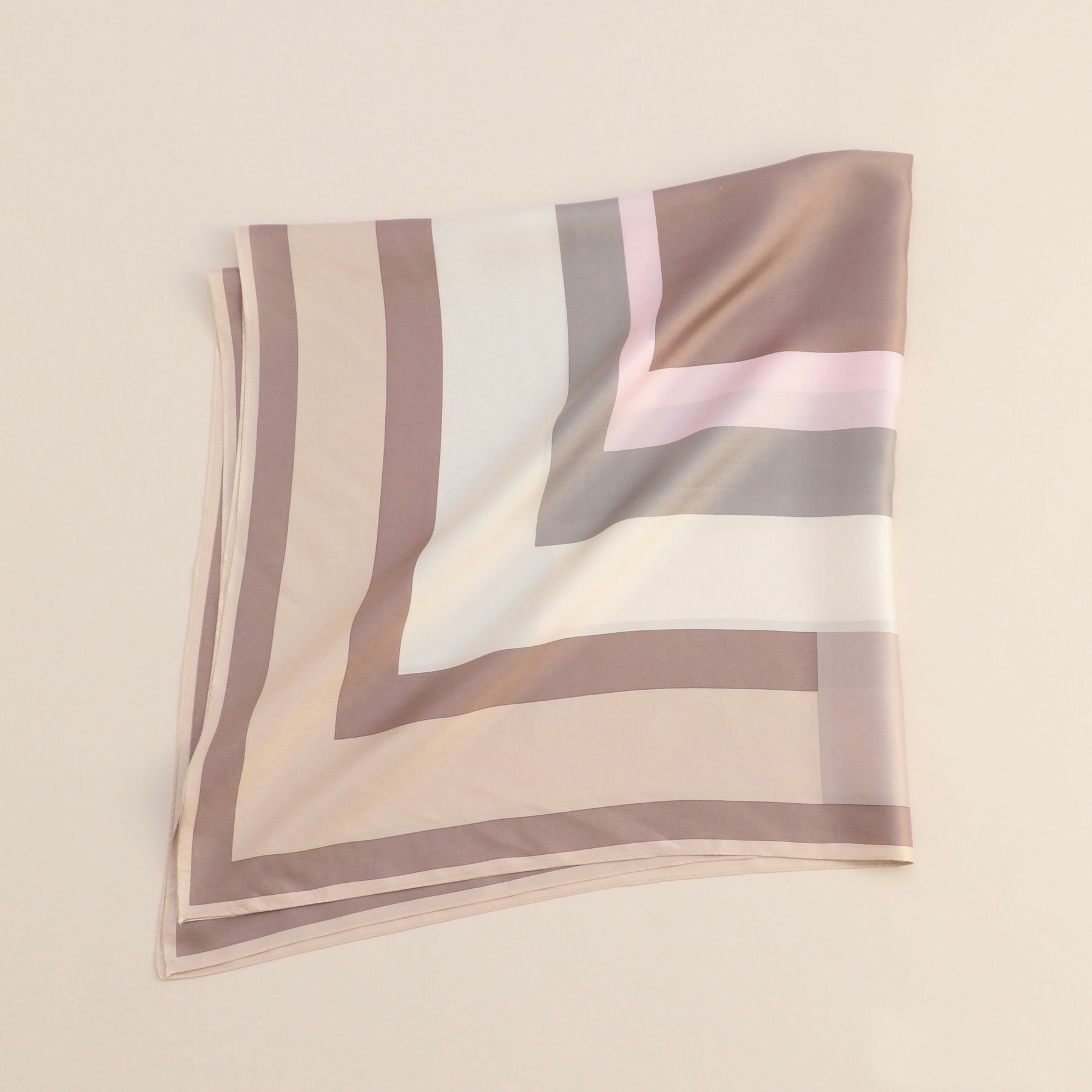 幾何柄スカーフ<グレージュ> シルク100% 日本製