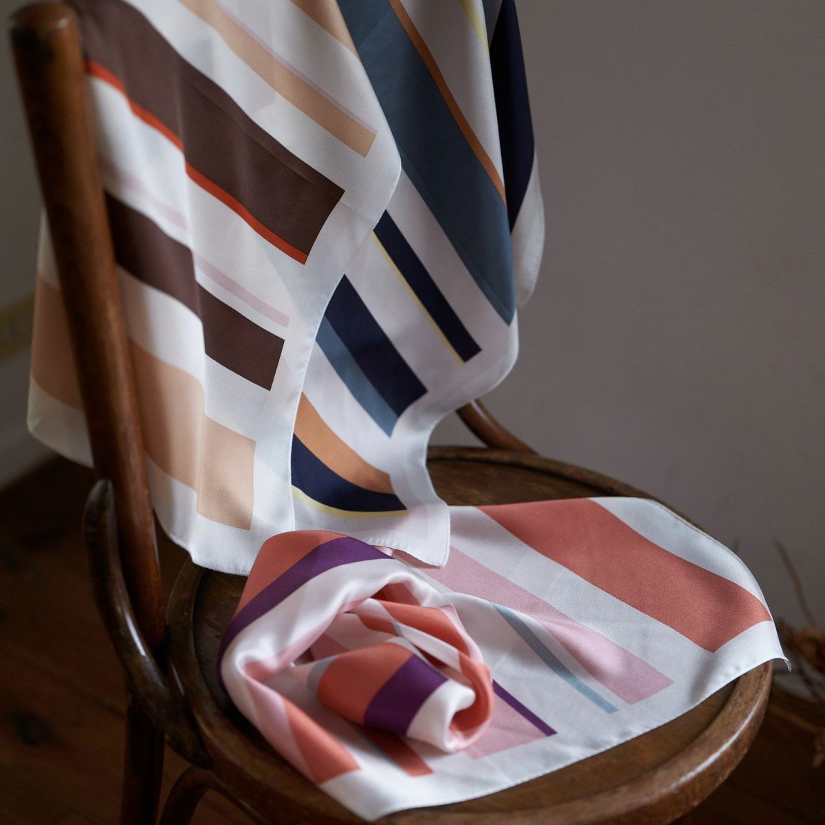 ランダムストライプスカーフ<ピンク> シルク100% 日本製