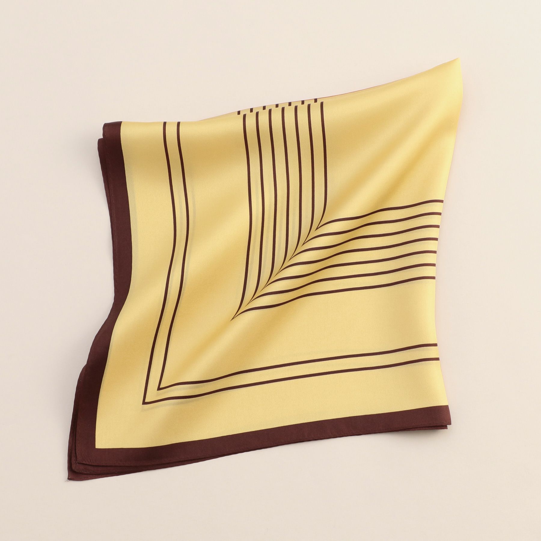 幾何柄スカーフ<グレー×イエロー> シルク100% 日本製