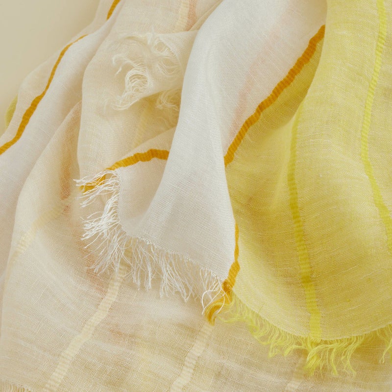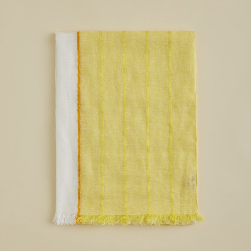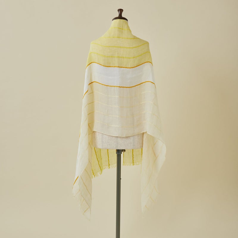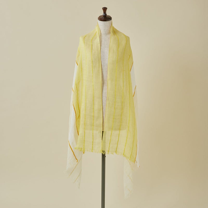 夏らしいブルーとイエローのカラーが夏のコーディネートに華を添えてくれるストール。