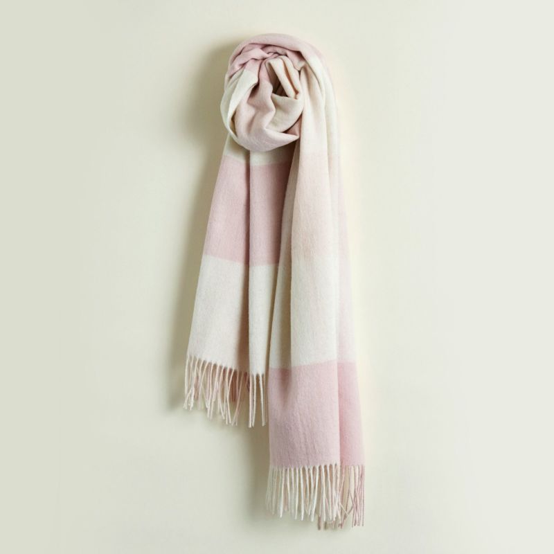 【会員登録】で300ptプレゼント★ ウール100%大判ブロックチェックストール<ピンク>