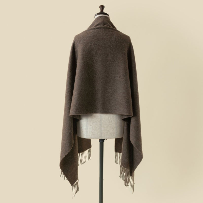 大判サイズのストールは、ぐるりと首元に巻けば秋冬ならではの季節感溢れるボリューム感を装え、肌寒い時期にはライトアウターとして羽織としてもお使い頂けます。