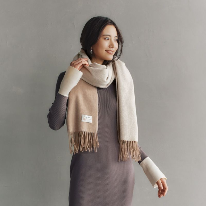 天然繊維の本場である内モンゴル産の上質なラムズウールを贅沢に使用した大判のリバーシブルストールです。温かみのある柔らかな触り心地が特徴。このアイテムがあるだけで着こなしの幅がとても広がります。 首元にボリュームのあるシルエットを加えることで、上品な雰囲気を表現。またブランケットとして膝にかける、羽織る、など さまざまな使い方が可能です。この一枚であなたのスタイリングを何ランクも昇華させます。秋の立ち上がり~寒い冬場~春先にかけて活躍する万能アイテム。洋服を選ばないベーシックな色展開となっているので、コーディネートの幅が広がります。※お客様のパソコン機器やスマートフォン及びモニタ環境の違い、または屋内・屋外での撮影により実際の商品の色と相違する場合がございます。