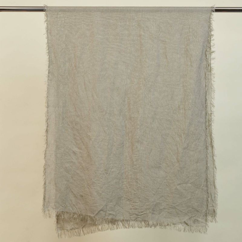 最初は少し硬さを感じる風合いとなりますが、使い込むことで繊維の結合がゆるみ、肌馴染みの良いストールへと変化していきます。また天然のリネン素材は、環境にも優しく丈夫なため、永くご愛用いただけます。