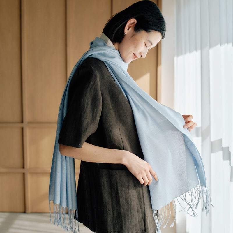 最高級の内モンゴル産のカシミヤ贅沢50%とシルク50%を丁寧に織り上げてお作りしたベーシックストールが新登場。カシミヤの暖かさとシルクの光沢感で極上の肌触りをお楽しみ頂けます。幅広いシーンと季節で活躍する頼もしい一枚です。オフィス内で一枚常備しておけば、クーラー対策や外出時の紫外線対策としてもお使い頂けます。